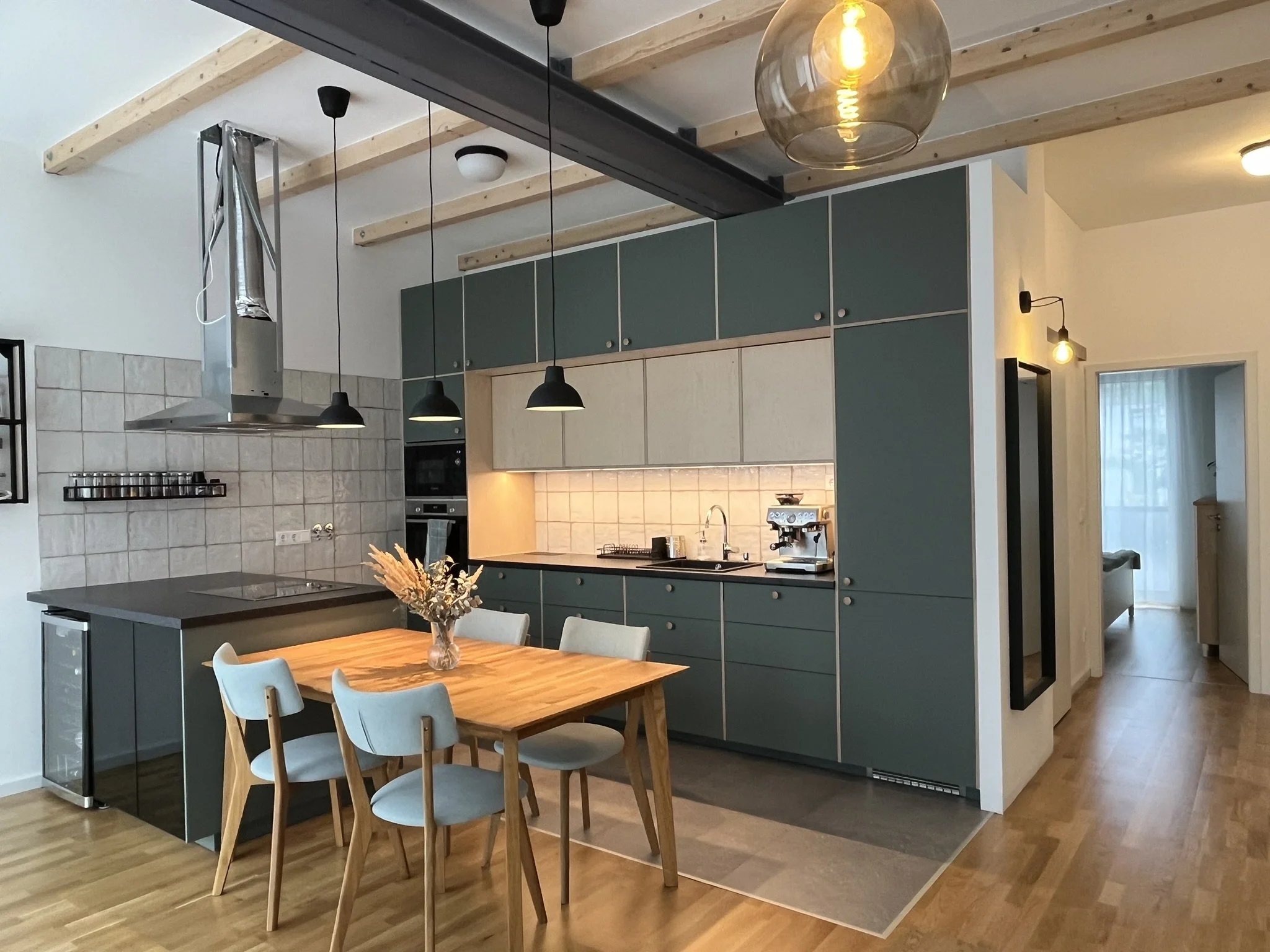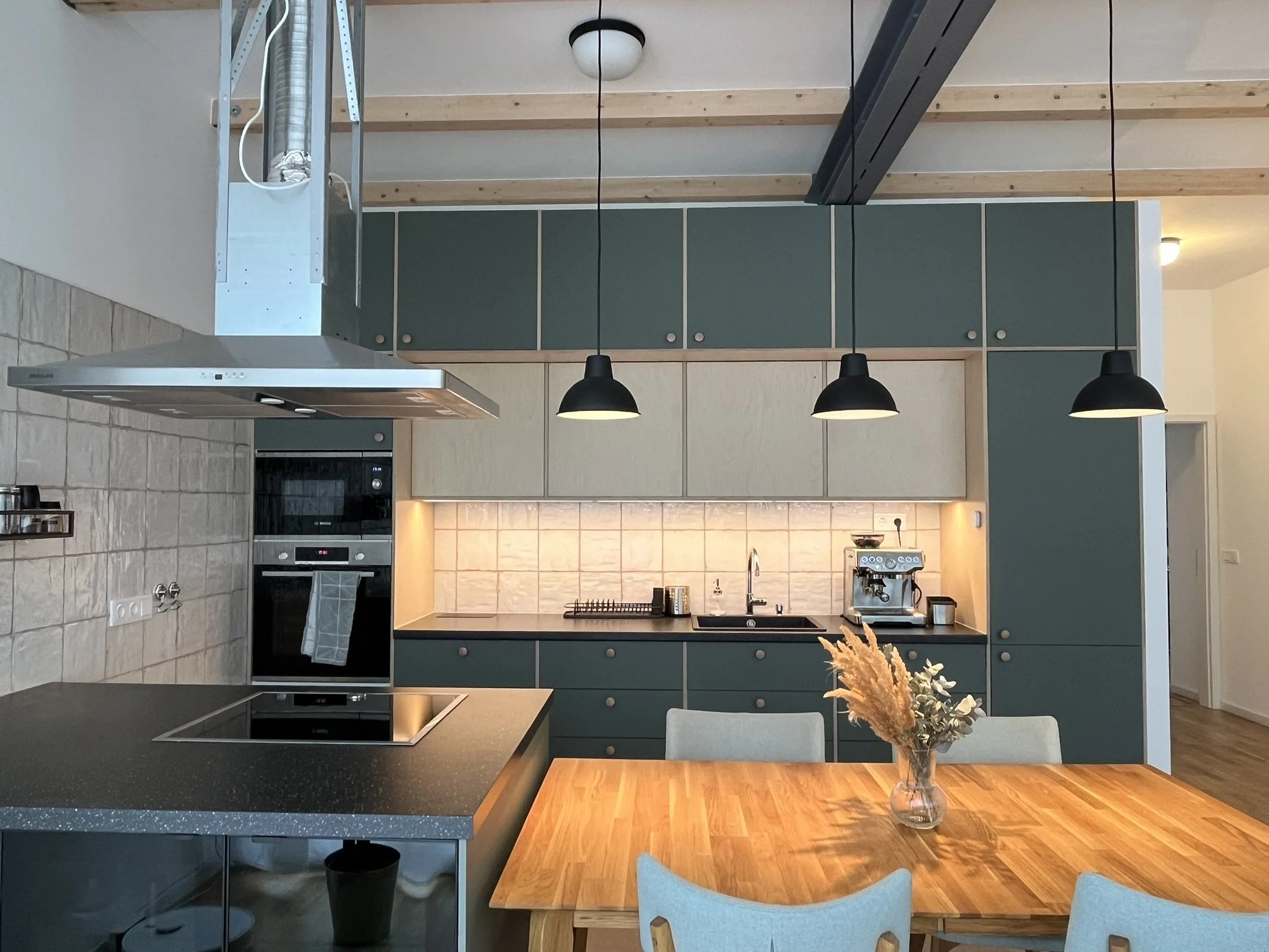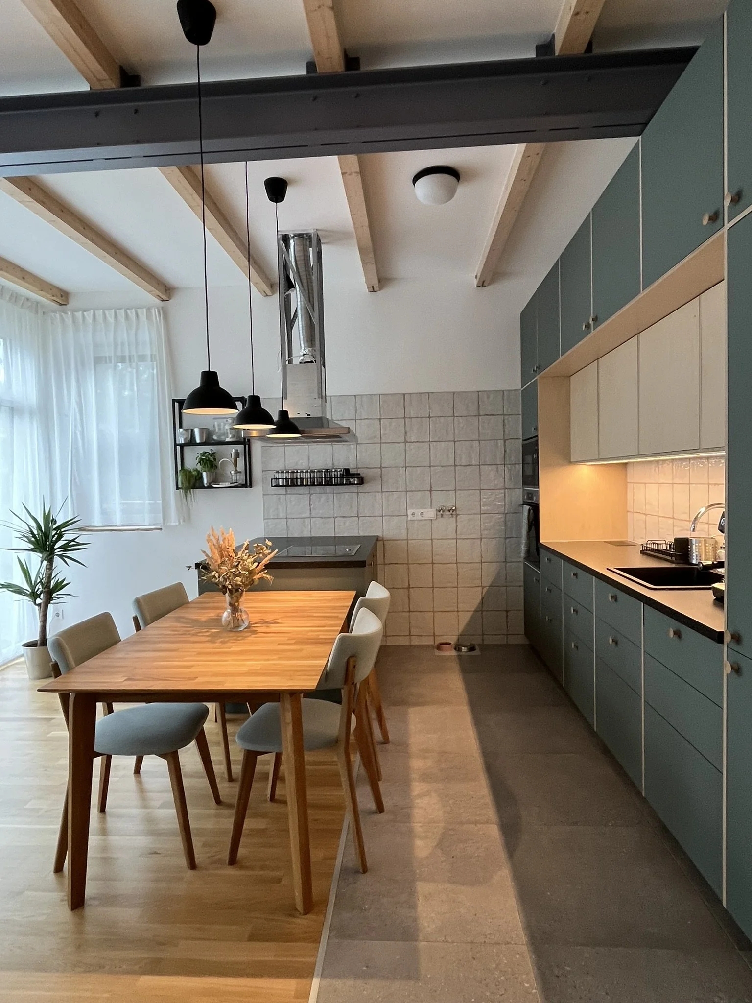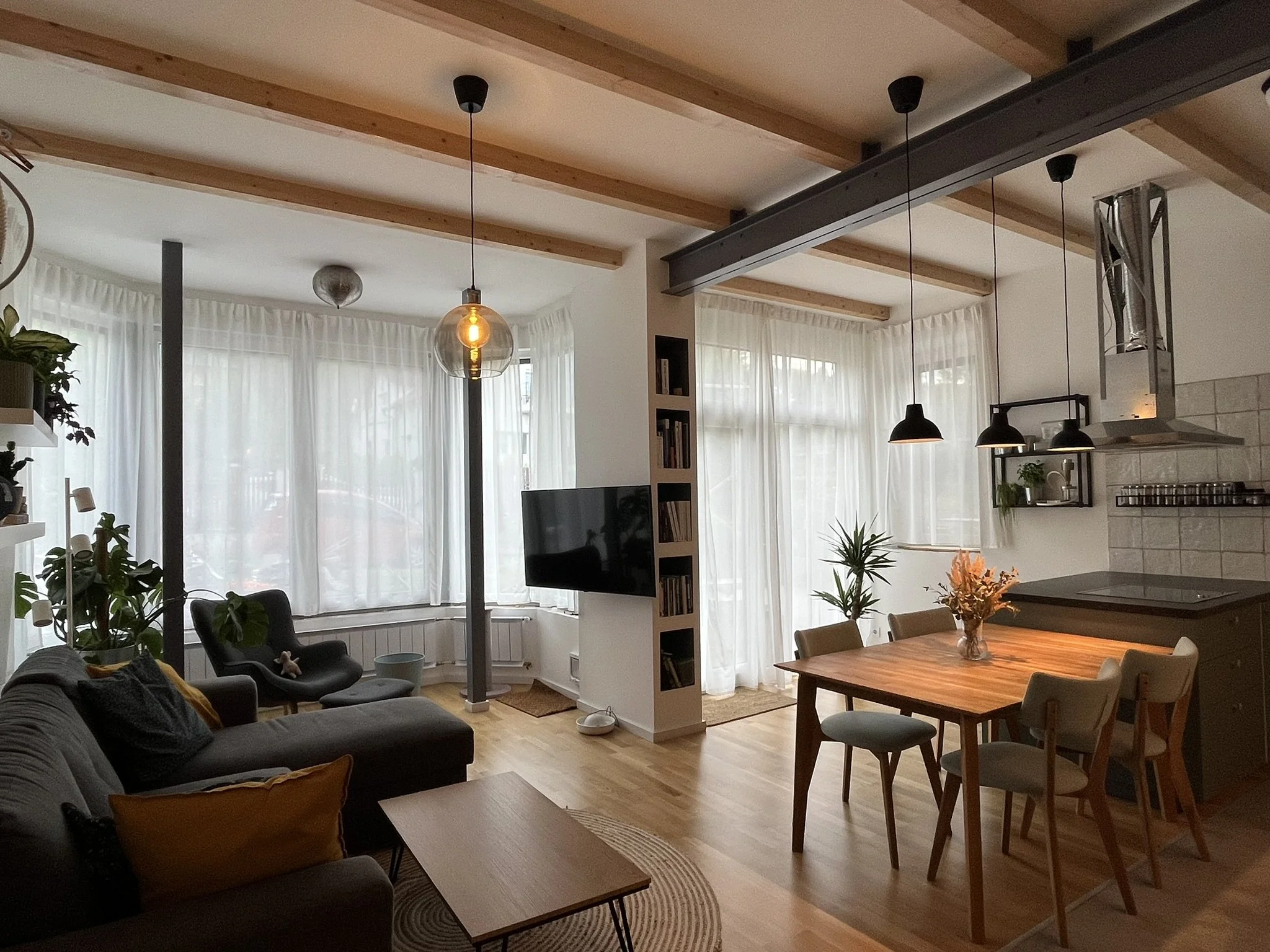 Egy budai családi ház felújítása során a korábban galériázott földszinti tereiből háromszobás új lakást alakítottunk ki. Az egykori, dupla belmagasságú nappali utólagos látszó fafödémet kapott. Fontos szempont volt a bútorozhatóság és a meglévő szerkezetekhez igazodva a gazdaságos térkihasználás. Minden részletet alaposan átgondoltunk. Megőriztük a ház eredeti karakterét, a nappalit pedig megnyitottuk a kert felé. Az emeleten egy másik lakást alakítottunk ki, amely a közös előtérből nyílik.